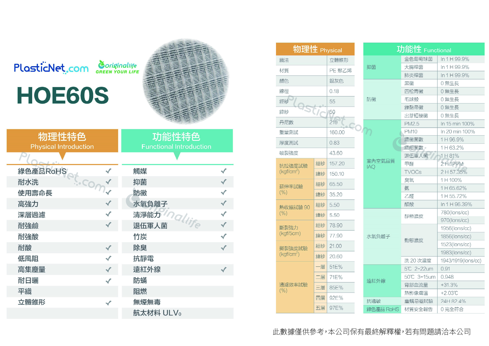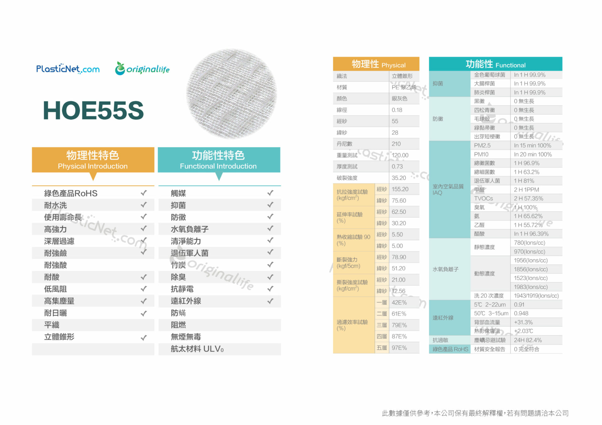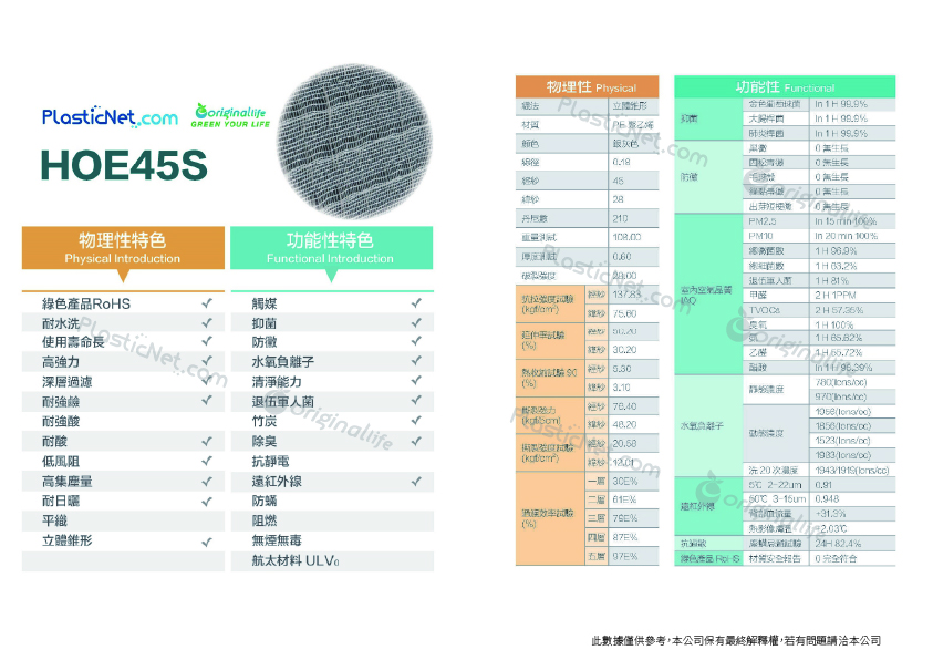 抗菌,防黴,抗靜電,負離子,除臭,抗過敏,耐用,無毒,遠紅外線,低壓損,綠色產品